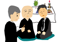 寺院に連絡をして枕経をお願いする。通夜、葬儀の日時、時間、場所と勤めて頂くお寺様の人数、院号の有無なども打ち合わせします。