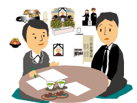 遺族、町内会、葬儀社で葬儀の打ち合わせをする。祭壇・霊柩車・香典返し品・会葬礼状、食事関係・お供物など細かい打ち合わせ行います。町内のお手伝いがある場合は町内会で手配することもございます。