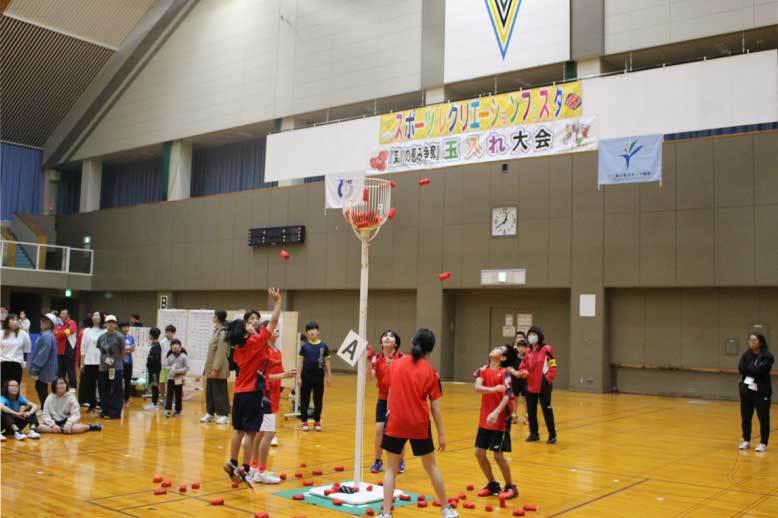 10月13日スポーツの日、スポーツ・レクリエーションフェスタと合わせて、小学生(14チーム)と一般(11チーム)の部に分かれて玉入れ大会を開催致しました。