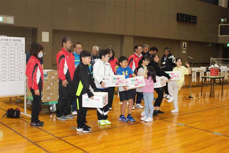 優勝賞品・お米ななつぼし25kg(1名/5kg) 準優勝・りんご50kg(1名/10kg) 3位・じゃが芋50kg(1名/10kg)と豪華賞品を各受賞チームが持ち帰りました。